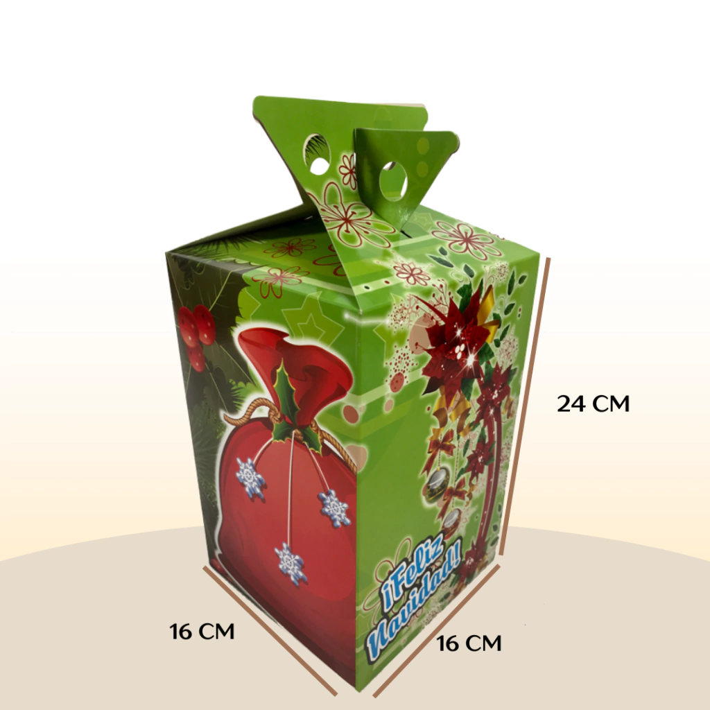 Cada caja tiene un tamaño de 24 cm de alto, 16 cm de ancho y 16 cm de largo cuando está armada.